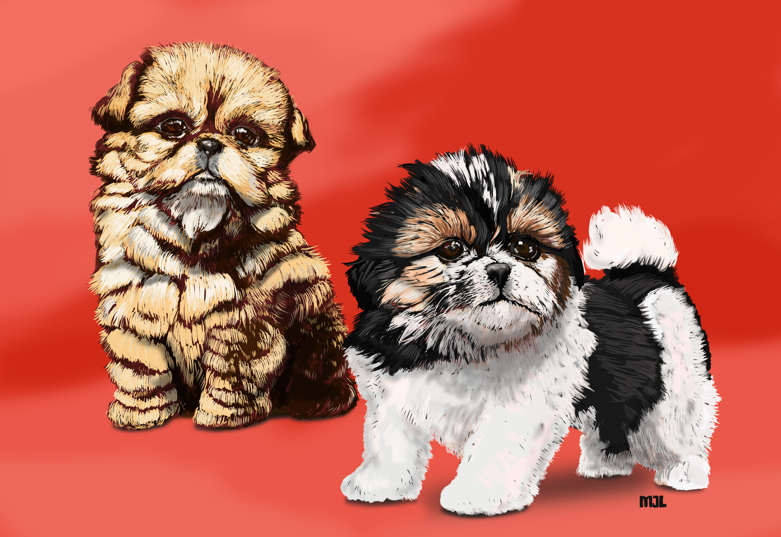 The photo that this painting is based on was taken in July 2008, when Docker and Roxie were just 4 weeks old.